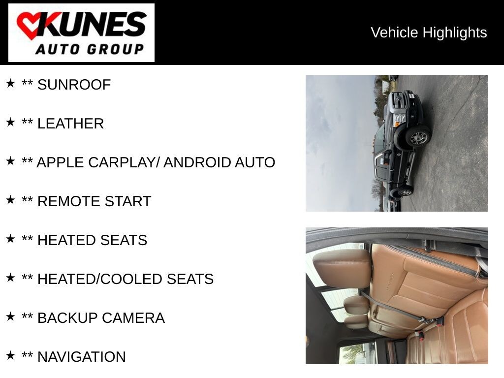 ** SUNROOF, ** LEATHER, ** APPLE CARPLAY/ ANDROID AUTO, ** REMOTE START, ** HEATED SEATS, ** HEATED/COOLED SEATS, ** BACKUP CAMERA, ** NAVIGATION, ** BLUETOOTH, 4WD, ABS brakes, Alloy wheels, Compass, Electronic Stability Control, Front dual zone A/C, Heated door mirrors, Illuminated entry, Low tire pressure warning, Remote keyless entry, Traction control.