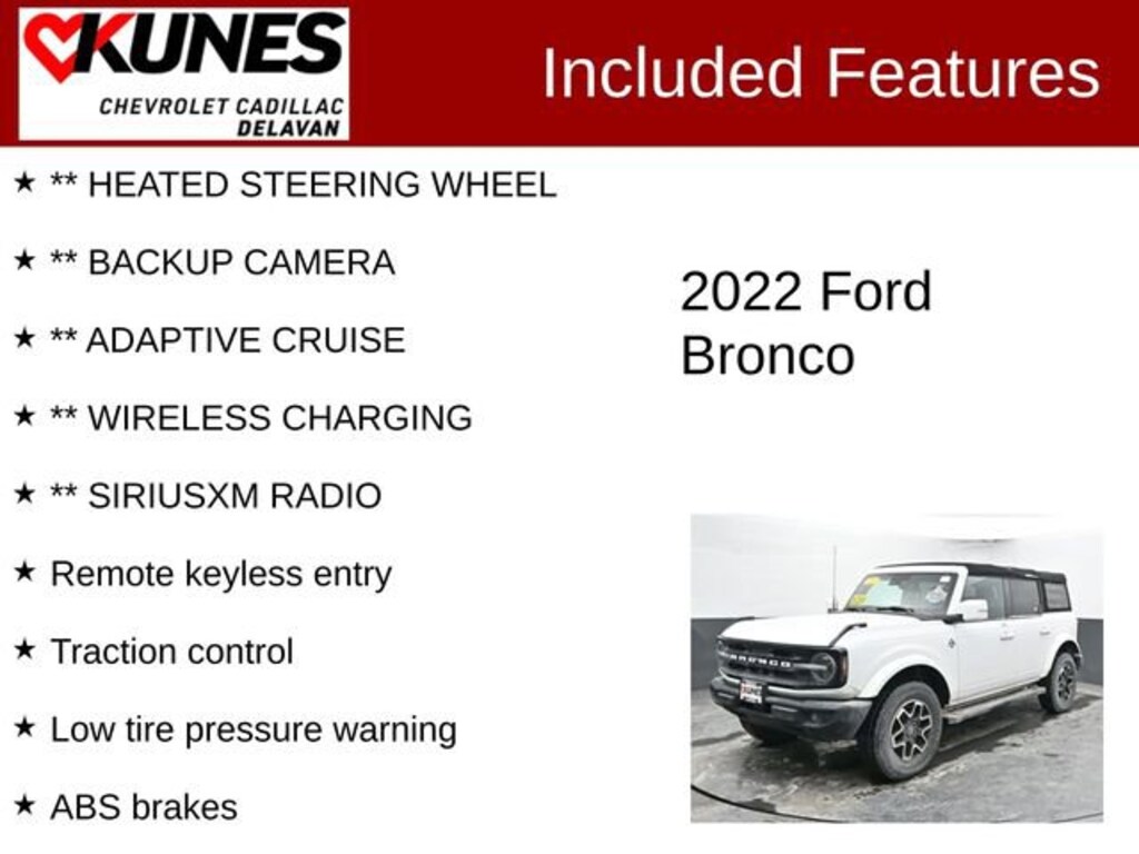 I want to start off by saying I have been waiting for the release for years and had very high expectations because I grew up in a bronco family. When I bought mine I was not disappointed. It was a beautiful blend of nostalgia and new features married to create a new vehicle in the small suv class that is different then all the others. There isn't much I don't like about the design. I have the big bend with a couple add on options. I'm very happy!… - 5.0